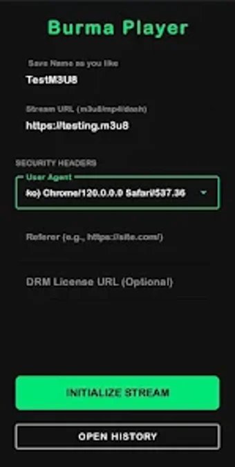 Burma Player is an Android application designed for streaming video content directly from URLs. It is particularly useful for developers and testers, offering features that enhance the playback experience. The app supports various streaming protocols, including HLS (m3u8), DASH, and MP4, ensuring compatibility with a wide range of video formats. Additionally, it allows users to customize headers such as User-Agent and Referer, which can be crucial for secure stream playback.